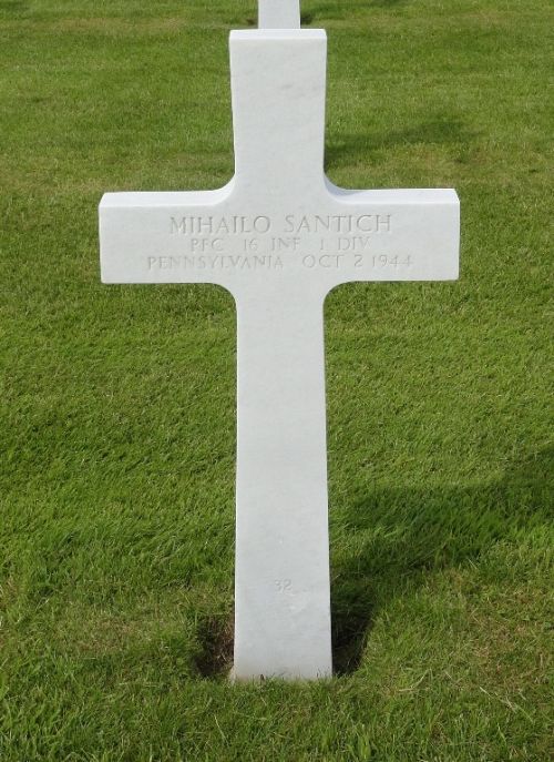 Mihailo Santich immigrated on 22 May 1939 and became an American citizen on 22 May 1943. His parents were living in Yugoslavia at the time of his death.He was a chauffeur before he enlisted in Erie, Pennsylvania on 10 March 1943.
