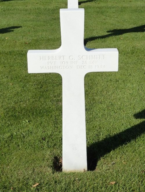 His initial burial took place on Foy Temporary American Military Cemetery, Bastogne, Belgium.Source of information: André Koch, Carla Mans, www.abmc.gov, www.wwiimemorial.com, www.ancestry.com - 1920/1930 Census / Headstone and Interment Record / U.S. WWII Draft Cards Young Men