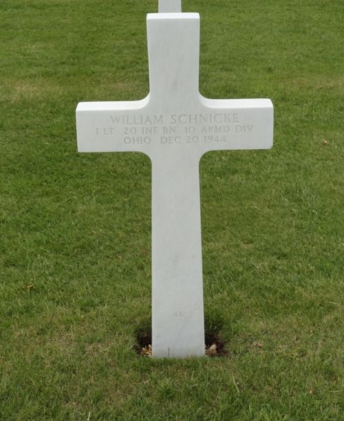 A member of Lt Schnicke's unit, Walter Lepinsky stated: I heard that Lt Schnicke got killed after he went down to a cellar and Sgt. Fields was manning a bazooka there. A German tank was coming up near the cellar and Fields went to fire on it, as I heard, Schnicke took the bazooka from Fields, but due to the movement a projectile came through the window and killed Schnicke.