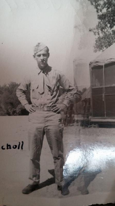 Pfc William V. Scholl was employed at the New York Central Railroad.He enlisted in Utica, New York on 22 February 1943 and joined his unit from the 92nd Replacement Battalion on 31 December 1944.