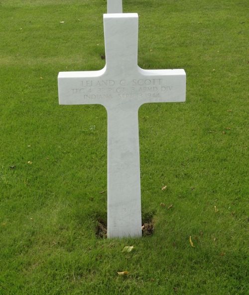 T/4 Leland C. Scott enlisted at Fort Benjamin Harrison, Indiana on 9 May 1942.He was first buried at the Temporary American Military Cemetery of Fosse, Belgium.