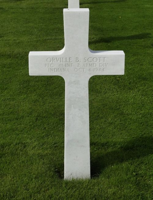 Pfc Orville B. Scott was employed at the Kroger Grocery and Baking Companybefore he enlisted in Indianapolis, Indiana on 25 September 1943.Note: In the ABMC database, the 41st Armored Infantry Regiment is incorrectly listed as a Battalion