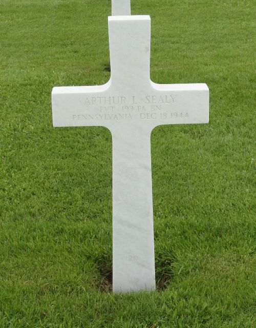 Pvt Arthur L. Sealy joined the National Guard in Philadelphia, Pennsylvania on 17 February 1941.Source of information: Leo Minne, www.abmc.gov, www.archives.gov – WWII Enlistment Record, www.ancestry.com - 1940 Census / U.S. Headstone and Interment Record for U.S. Military Cemeteries on Foreign Soil / U.S. Public Records Index