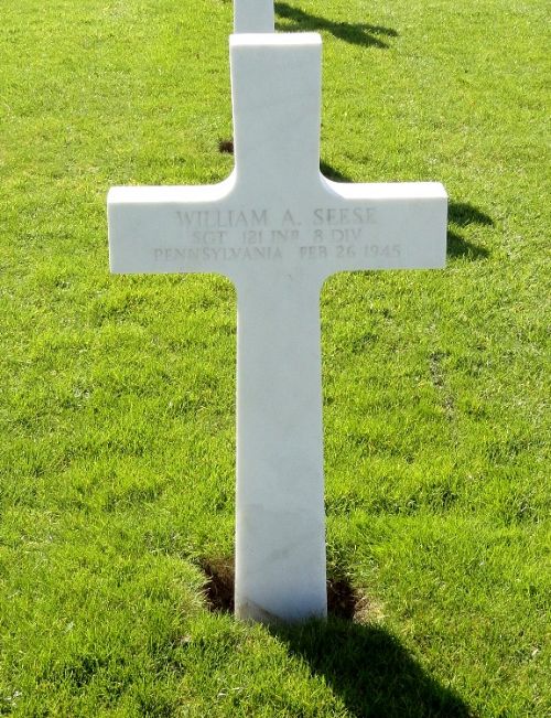 Sgt William A. Seese joined the Regular Army on 3 January 1940.Source of information: Terry Hirsch, Raf Dyckmans, Peter Schouteten, www.abmc.gov, www.ancestry.com - 1930 Census / U.S., Headstone and Interment Records for U.S. Military Cemeteries on Foreign Soil, 8th infantry division, michael parkin, Pennsylvania, Veteran Compensation Application Files, WWII / 1930 Census, http://cgsc.contentdm.oclc.org - After Action Report 121st Infantry Regiment, www.wwiimemorial.com, www.archives.gov – WWII Enlistment Record