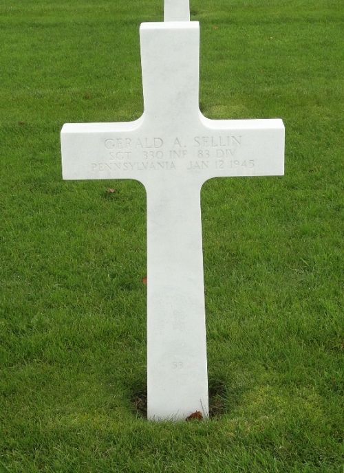 Sgt Gerald A. Sellin is remembered at the Oakland Cemetery Warren in Warren County, Pennsylvania.Source of information: Peter Schouteten, Sheree Dowdle, www.abmc.gov, www.wwiimemorial.com, www.ancestry.com - U.S., Headstone and Interment Records for U.S. Military Cemeteries on Foreign Soil / 1920/1930 Census / U.S. WWII Draft Cards Young Men, http://83rdinfdivdocs.org – After Action Report