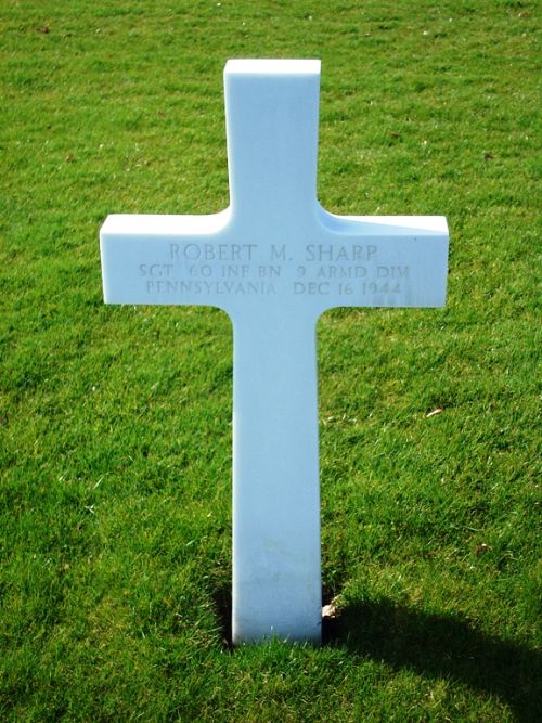 Sgt Robert M. Sharp gradudated from Munhall High School and was a clerk before he volunteered for the Army of the United States in Pittsburgh, Pennsylvania on 26 October 1942.He was first buried at the Temporary American Military Cemetery of Foy, Belgium.