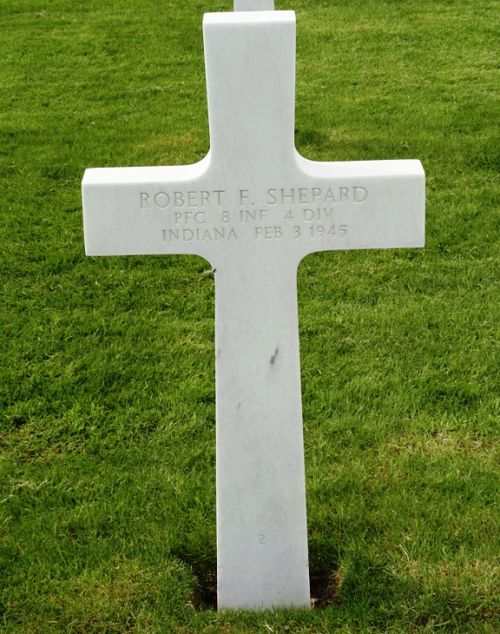 Pfc Robert F. Shepard enlisted in Indianapolis, Indiana, on 14 October 1943.He was first buried at Temporary American Military Cemetery Foy, Belgium.