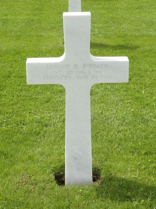 Pvt Lennie B. P'Simer was a retail manager before he enlisted in Huntington, West Virginia on 23 October 1943.He was awarded the Silver Star for conspicuous gallantry and intrepidity in action against the enemy.