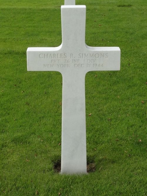 Pvt Charles R. Simmons attended Heuvelton High School and was employed by the Cleveland Container CoHe enlisted in Utica, New York on 20 January 1944 and was sent overseas in September 1944