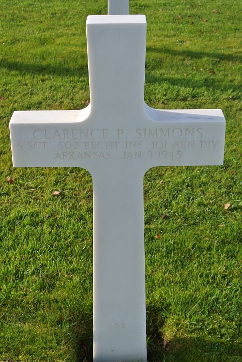 S/Sgt Clarence P. Simmons joined the Regular Army at Fort Sill, Oklahoma on 28 October 1940.He was first buried at the Temporary American Military Cemetery of Foy, Belgium.