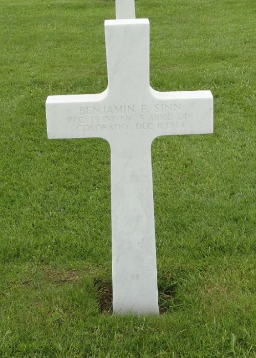 Pfc Benjamin F. Sinn worked on a farm before he enlisted at Fort Bliss, Texas on 20 March 1942.Source of information: Peter Schouteten, Carla Mans, www.abmc.gov, www.wwiimemorial.com, www.archives.gov – WWII Enlistment