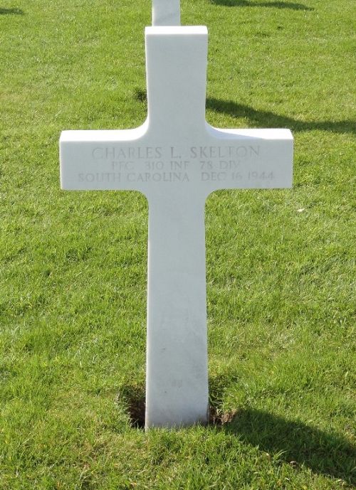 Pfc Charles L. Skelton worked on a farm before he enlisted at Fort Bragg, North Carolina on 26 March 1944.Source of information: Peter Schouteten, James L. Cooper, Richard Blunk, www.abmc.gov, www.findagrave.com, www.wwiimemorial.com, www.archives.gov - WWII Enlistment Record, www.ancestry.com - U.S., Headstone and Interment Records for U.S. Military Cemeteries on Foreign Soil / Sweeney Fischer Family Tree