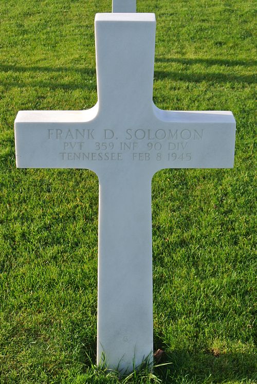 Pvt Frank D. Solomon was a driver before he enlisted in Fort McPherson Atlanta, Georgia on 30 May 1944.He was first buried at the Temporary American Military Cemetery of Foy, Belgium.