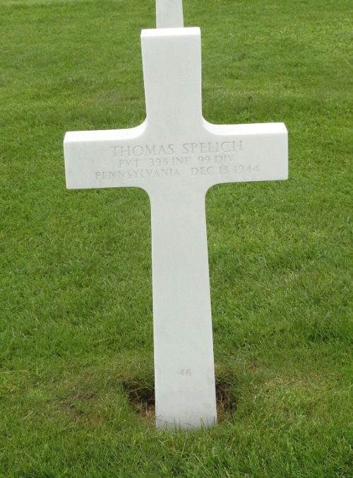 Pvt Thomas Spelich enlisted in Pittsburgh, Pennsylvania on 22 December 1943.Source of information: Peter Schouteten, www.abmc.gov, www.wwiimemorial.com, www.archives.gov - WWII Enlistment Record, www.ancestry.com - Headstone and Interment Record / 1940 Census