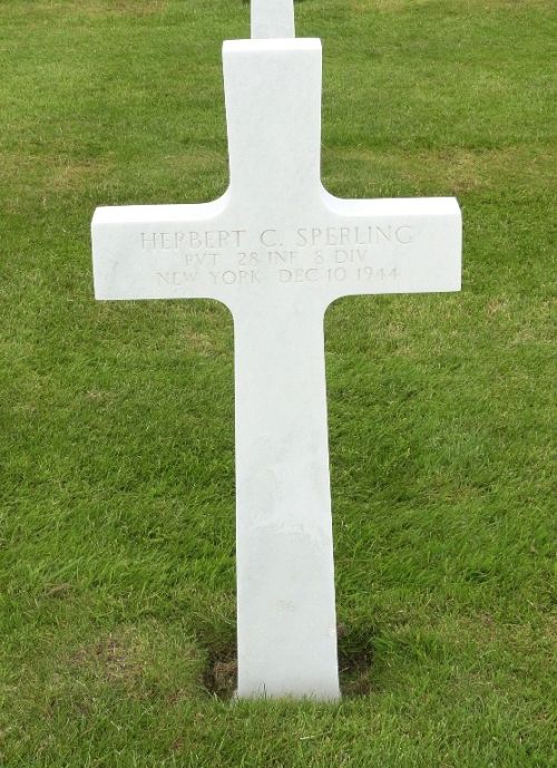 Pvt Herbert C. Sperling was a typesetter before he enlisted at Camp Upton, New York on 24 February 1944.Source of information: Raf Dyckmans, Astrid van Erp, Sheree Dowdle, www.abmc.gov, www.wwiimemorial.com, www.archives.gov - WWII Enlistment Record, www.ancestry.com - Headstone and Interment Record / Jewish Servicemen Card / U.S. WWII Draft Cards Young Men, http://cgsc.contentdm.oclc.org - History of the 28th Infantry Regiment, After Action Report of the 28th Infantry Regiment, Terry Hirsch
