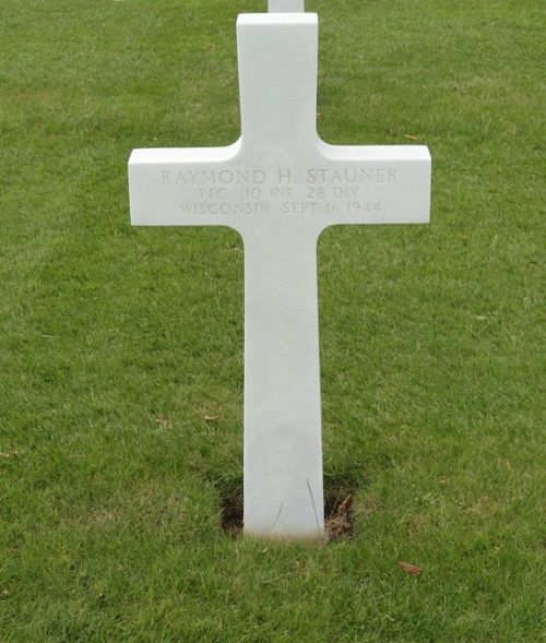 Pfc Raymond H. Stauner enlisted in Barron, Wisconsin on 6 March 1943.He was killed by small arms fire in the neck.