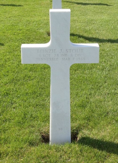 S/Sgt Lonzie J. Stout attended Hampton High School and was employed at the Tennessee Valley AuthorityHe enlisted at Fort Oglethorpe, Georgia on 2 December 1942. He was sent overseas in August 1944.