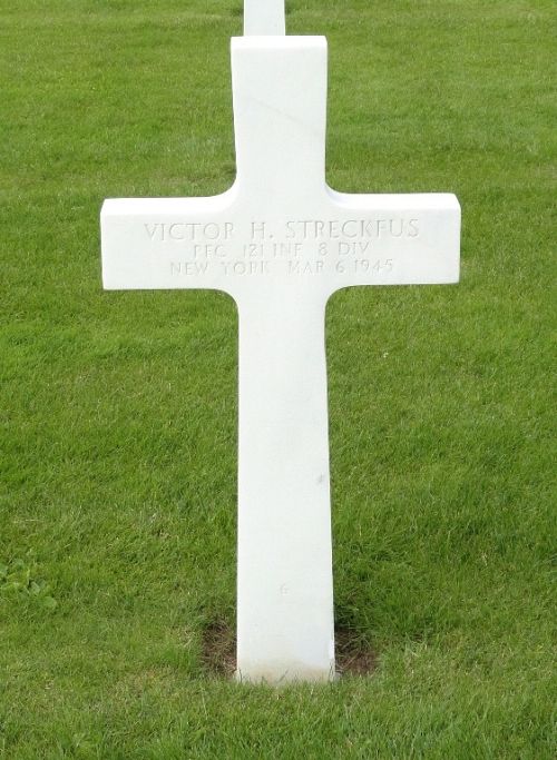 Pfc Victor H. Streckfus enlisted in New York City, New York on 16 February 1943.Source of information: Raf Dyckmans, Peter Schouteten, Carla Mans, www.abmc.gov, www.wwiimemorial.com, www.archives.gov - WWII Enlistment Record, www.ancestry.com - Headstone and Interment Record / U.S. WWII Draft Cards Young Men / 1925 Census, http://cgsc.contentdm.oclc.org - After Action Report 121st Infantry Regiment