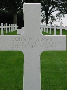 T/4 John W. Adams was employed by the Crater Lake Lumber and Box Company.He enlisted on 10 May 1942 and trained at Fort Knox, Kentucky and Fort Benning, Georgia. He joined his unit at Camp Polk, Louisiana in September 1942.