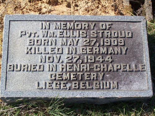 Pvt William E. Stroud worked on a farm before he enlisted at Fort McPherson, Atlanta on 21 April 1944.Pvt Stroud is remembered at the Sumach Cumberland Presbyterian Cemetery in Crandall, Murray County, Georgia.
