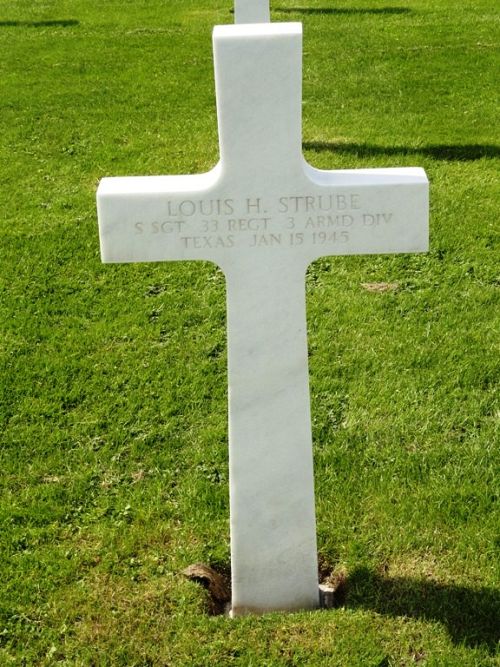 S/Sgt Louis H. Strube was first buried at Temporary American Military Cemetery Henri-Chapelle, Belgium on Block FFF, Row 8, Grave 148.
