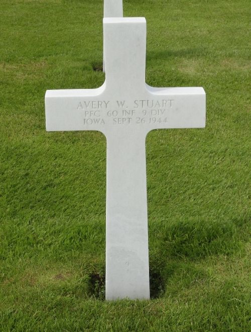 Pfc Avery W. Stuart was a truck driver before he enlisted in October 1943.His half-brother, Lyle F. Barnett, was killed in action on 4 January 1945 and is buried at Epinal American Cemetery.