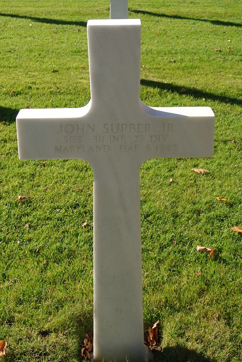 Sgt John Surber Jr. was a clerk before he enlisted in Baltimore, Maryland on 10 May 1944.Source of information: Peter Schouteten, Jim Cooper, Carla Mans, Richard Blunk www.abmc.gov, www.wwiimemorial.com - John Surber, www.archives.gov - WWII Enlistment Record, www.ancestry.com - Headstone and Interment Record / U.S. WWII Draft Cards Young Men