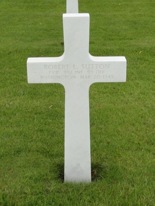 Pvt Robert L. Sutton was a painter before he enlisted in Seattle, Washington on 18 February 1944.Source of information: Peter Schouteten, Carla Mans, www.abmc.gov, www.wwiimemorial.com, www.archives.gov – WWII Enlistment Record, www.ancestry.com - Headstone and Interment Record / U.S. WWII Draft Cards Young Men / 1930 Census