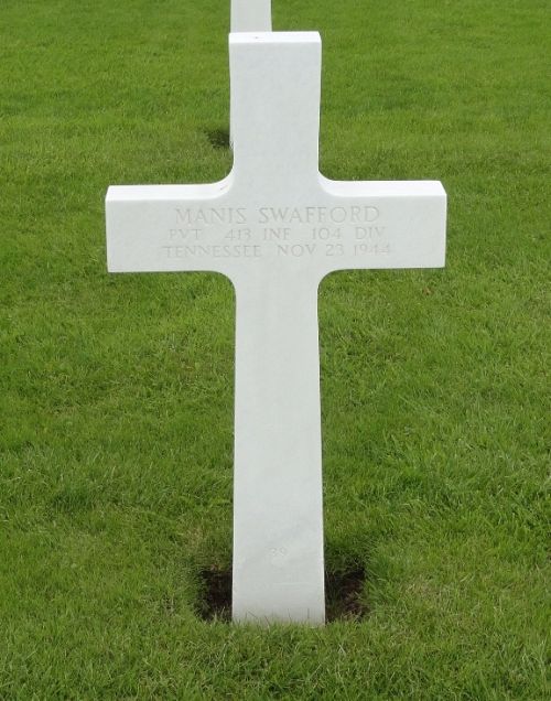 Pvt Manis Swafford worked on a farm before he enlisted at Fort Oglethorpe, Georgia on 13 November 1943.Source of information: Raf Dyckmans, Carla Mans, www.abmc.gov, www.wwiimemorial.com, www.archives.gov - WWII Enlistment Record, www.ancestry.com - Thomas Family Tree / Headstone and Interment Record / U.S. WWII Draft Cards Young Men