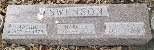 SWENSON, Harold Leverne - Date of