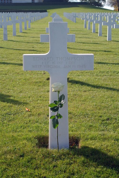 He was awarded the Silver Star Medal posthumously. The citation cited: For gallantry in action in the vicinity of Faymonville, Belgium, 17 January 1945. When assault elements were impeded by an intense automatic-weapons and small-arms barrage from a building occupied by the enemy, Lt Thompson courageously led a group across perilous terrain to the strongpoint. Then, with utter disregard for personal safety, he fearlessly engaged the foe and, with accurately directed grenades, compelled the hostile force to surrender. Lt Thompson’s gallant actions and outstanding devotion to duty exemplify the finest traditions of the service.