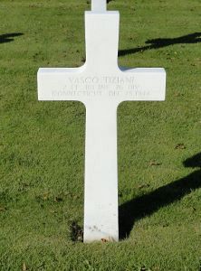2nd Lt Vasco Tiziani graduated from the University of Connecticut in the class of 1943. He graduated with a Bachelor of Science in Agriculture as well as completed the Advanced Courses of the R.O.T.C.degree.He was killed after the squad he was leading came under attack near Kaundorf, Luxembourg.