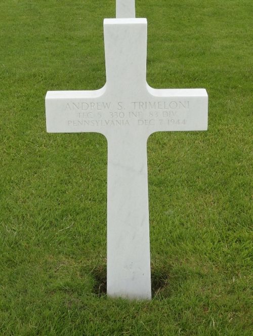 T/5 Andrew S. Trimeloni graduated from Shade Township High School. He was employed by the Glenn Martin aircraft plant in Baltimore.He enlisted in Altoona, Pennsylvania on 30 September 1942 and was sent overseas overseas in April 1944.