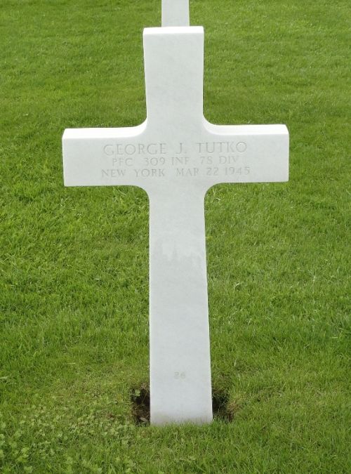 Pfc George J. Tutko worked in a machine shop before he joined the Regular Army at Fort Dix, New Jersey on 9 February 1944.Source of information: Peter Schouteten, www.abmc.gov, www.findagrave.com – James L. Cooper, Richard Blunk, www.wwiimemorial.com, www.archives.gov – WWII Enlistment Record, www.ancestry.com - U.S., Headstone and Interment Records for U.S. Military Cemeteries on Foreign Soil / Lasota Family Tree