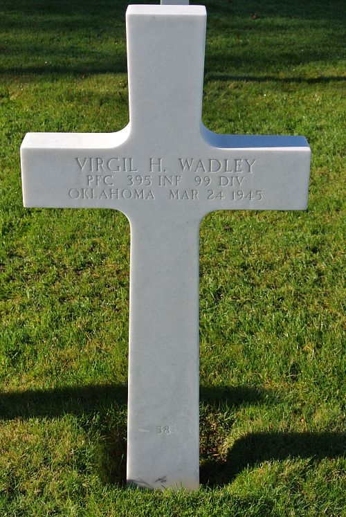 Pfc Virgil H. Wadley was a checker before he enlisted in Oklahoma City, Oklahoma on 5 February 1943.Source of information: Peter Schouteten, Sheree Dowdle, www.abmc.gov, www.wwiimemorial.com, www.archives.gov – WWII Enlistment Record, www.ancestry.com - Headstone and Interment Record / U.S. WWII Draft Cards Young Men / 1940 Census