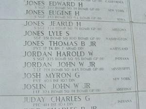 S/Sgt Jordan graduated from Spartanburg High School with the Class of 1941. He had been active in sports, especially basketball and baseball. He also attended college for one year and was a bookkeeper.He volunteered for the Air Corps of the Army of the United States at Fort Benjamin Harrison, Indiana on 10 September 1942.