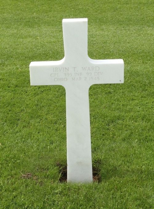 Cpl Irvin T. Ward was a stock clerk before he enlisted in Cincinnati, Ohio on 20 January 1943.Source of information: Peter Schouteten, Sheree Dowdle, www.abmc.gov, www.wwiimemorial.com, www.archives.gov - WWII Enlistment Record, www.ancestry.com - U.S., Headstone and Interment Records for U.S. Military Cemeteries on Foreign Soil / Ward Hall Family Tree