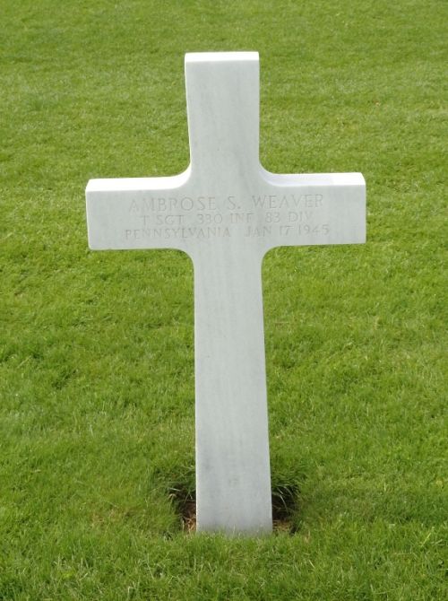 T/Sgt Ambrose S. Weaver attended high school for four years and was a machinist apprentice before he enlisted in Philadelphia, Pennsylvania on 25 October 1943.He joined his unit from the 92nd Replacement Battalion on 11 July 1944.