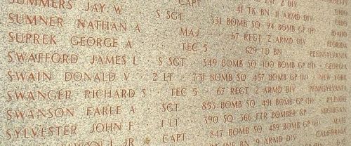 S/Sgt James L. Swafford was a tool sharpener before he volunteered for the Air Corps of the U.S. Army at Fort McPherson, Atlanta, Georgia on 14 December 1942.Statement of Sgt. George Penman, surviving crew member: