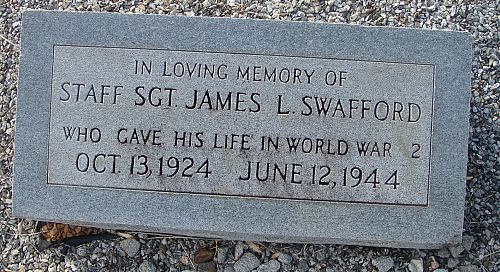 S/Sgt James L. Swafford is remembered at Hills Crossing Baptist Church Cemetery in Habersham County, Georgia with a memorial marker.