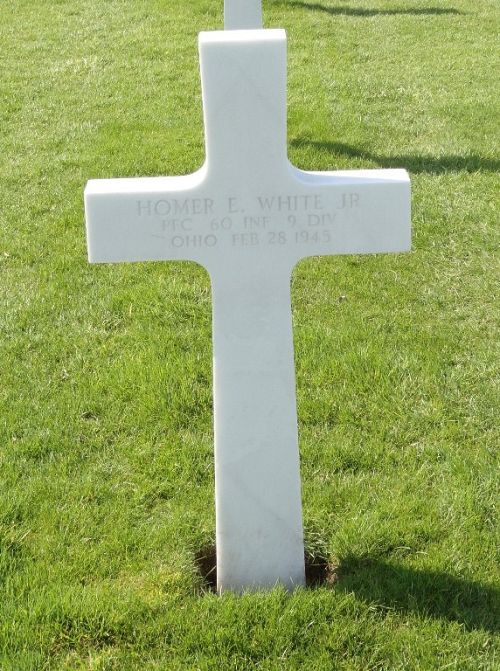 Pfc Homer E. White Jr. was a messenger before he enlisted in Cincinnati, Ohio on 18 October 1943.Source of information: Peter Schouteten, Carla Mans, www.abmc.gov, www.wwiimemorial.com, www.archives.gov – WWII Enlistment Record, www.ancestry.com - Headstone and Interment Record / U.S. WWII Draft Cards Young Men, http://9thinfantrydivision.net
