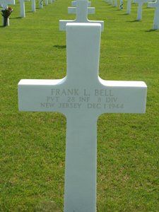Pvt Frank L. Bell was a maintenance painter before he enlisted in Newark, New Jersey on 27 January 1944. he was sent overseas in August 1944.He was initially buried in a temporary grave at Margraten on 12 May 1945 and was given his final resting place in January 1949.