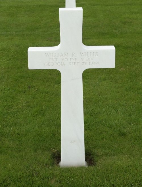 Pvt William R. Willis worked on a farm before he enlisted at Fort McPherson, Georgia on 15 December 1943.Source of information: Peter Schouteten, Carla Mans, www.abmc.gov, www.wwiimemorial.com, www.archives.gov – WWII Enlistment Record, www.ancestry.com - Headstone and Interment Record / 1920/1940 Census / U.S. WWII Draft Cards Young Men, http://9thinfantrydivision.net