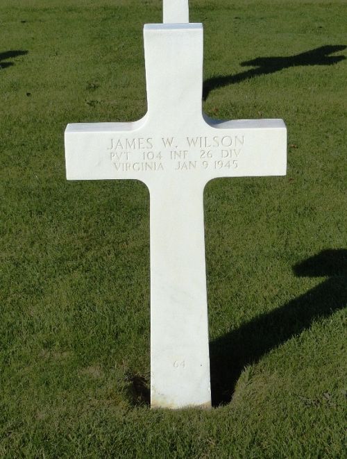 He was first buried at Temporary American Military Cemetery Foy, Belgium Block A, Row 3, Grave 74.