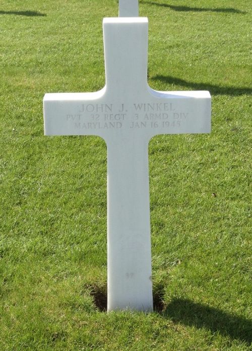 Pvt John J. Winkel was a driver before he enlisted in Baltimore, Maryland on 29 January 1944 and went overseas in September. Before he joined the Army he was employed as a clerk. Two of his brothers, George and Charles, were in the Navy, somewhere in the Pacific.He was the father of two sons, Francis, 3 years old and John 5.
