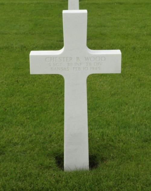 S/Sgt Chester B. Wood was first buried on Block KKK, Row 3, Grave 54.Source of information: Peter Schouteten, Richard Blunk, Sheree Dowdle, www.abmc.gov, www.wwiimemorial.com, www.ancestry.com - Headstone and Interment Record / U.S. WWII Draft Cards Young Men, https://familysearch.org
