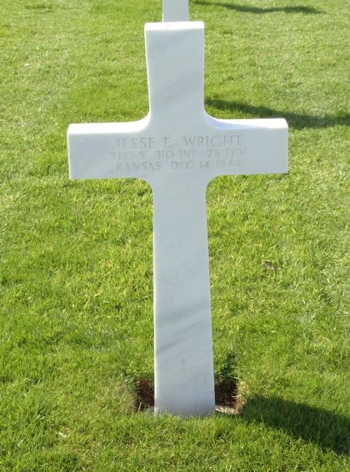 T/5 Jesse E. Wright was first buried at Block QQ, Row 1, Grave 5.Source of information: Peter Schouteten, Carla Mans, www.abmc.gov, www.findagrave.com - James L. Cooper / Richard Blunk, www.wwiimemorial.com, www.ancestry.com - Headstone and Interment Record / 1930 Census / U.S. WWII Draft Cards Young Men