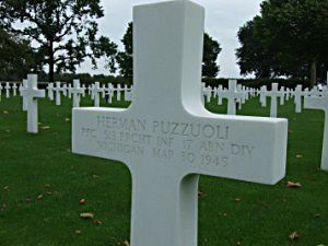 Pfc Herman Puzzuoli was employed at the Bundy Tubing Company.Pfc Puzzuoli was a happy-go-lucky type of boy, always in high spirits. One of his favorite pastimes was roller skating. He was very fond of fighting, especially boxing.