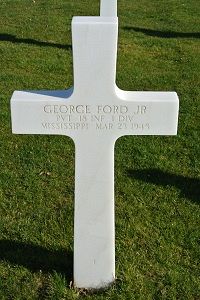 Pvt George Ford Jr. worked as a carpenter before he enlisted at Camp Shelby, Mississippi on 3 December 1942.Source of information: André Koch, Raf Dyckmans, Terry Hirsch, www.abmc.gov, www.wwiimemorial.com, www.archives.gov - WWII Enlistment Record, www.history.army.mil/html/bookshelves/resmat/ww2list.html, www.ibiblio.org/hyperwar, www.ancestry.com - 1940 Census, WWII Draft Card