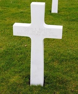Eyewitness accounts indicate that S/Sgt Foster was killed in action during the morning of 29 November 1944. He was leading a squad of the second platoon that became lost in the darkness and missed a crucial turn during the early stages of the attack. Instead of moving directly toward the objective the platoon veered off toward a different segment of the German lines where they were pinned down by enemy fire. When S/Sgt Foster stood up to try and determine what was going on he was apparently hit by machine gun fire. He was the platoon's only fatality. The rest, including one and possibly two men who were wounded, were taken prisoner.